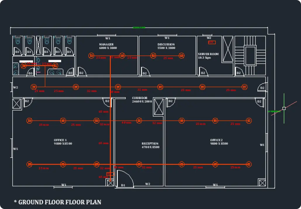 Complete 2D drafting set including HVAC, plumbing, and electrical layouts…