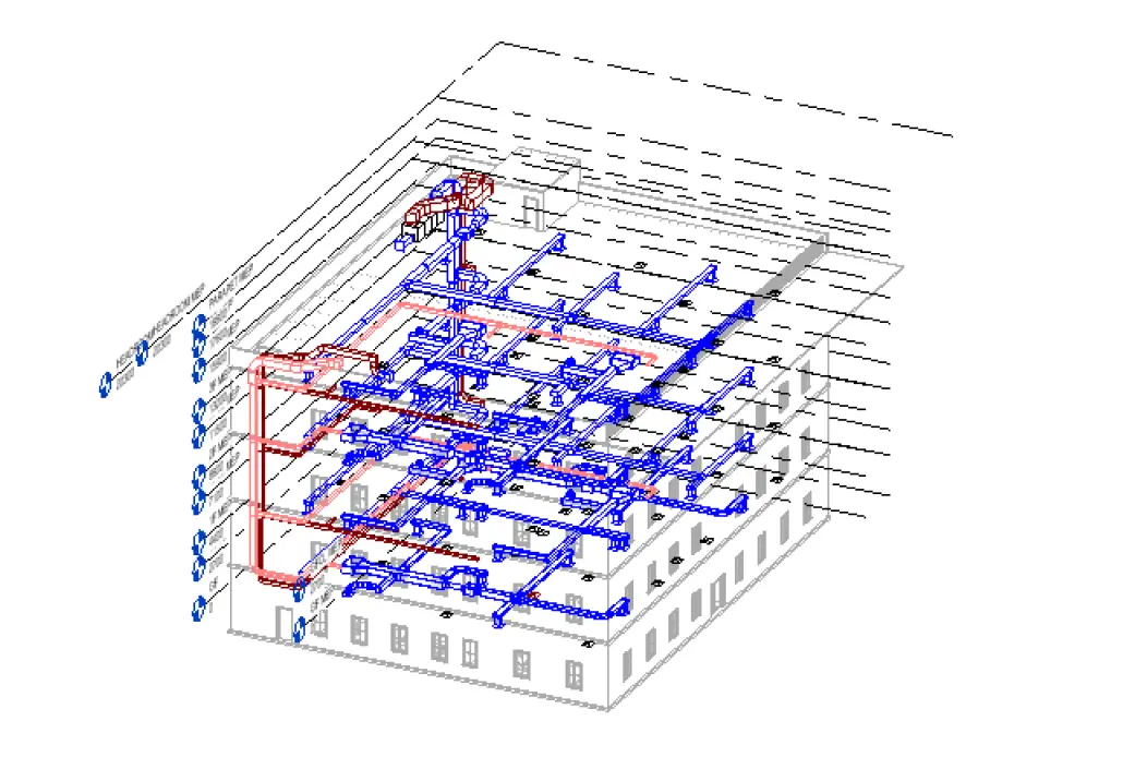 A fully coordinated BIM model resolving mechanical clashes across multiple…