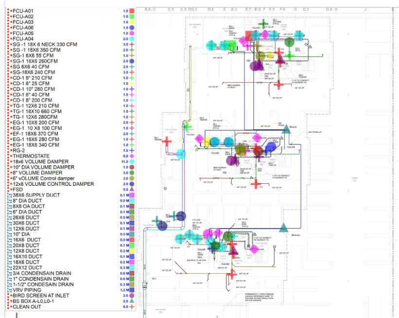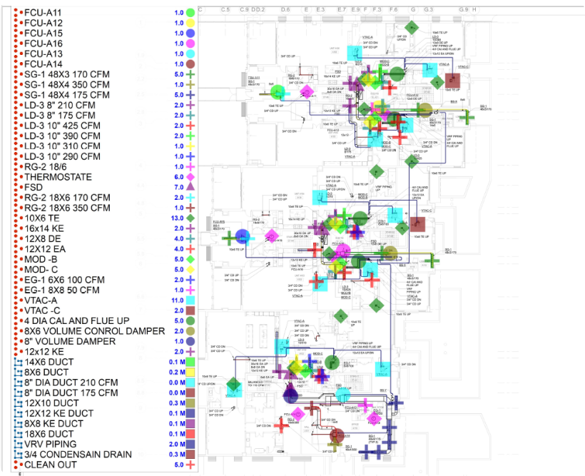 The client needed a highly accurate HVAC quantity take off that captured all key components such as ducts, pipes, insulation, elbows, transitions, dampers, diffusers, grilles, and hangers. Their expectations included:
